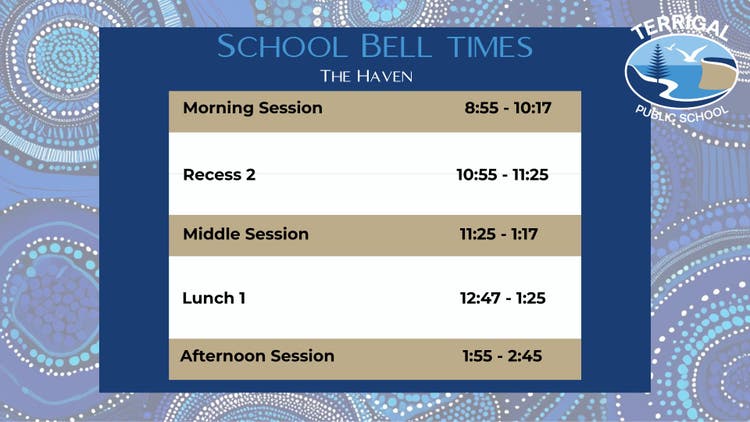 Our school day is structured around a clear timetable. We have set times for learning sessions, activities and lunch. Understanding the bell times helps students get the most out of each part of the day.